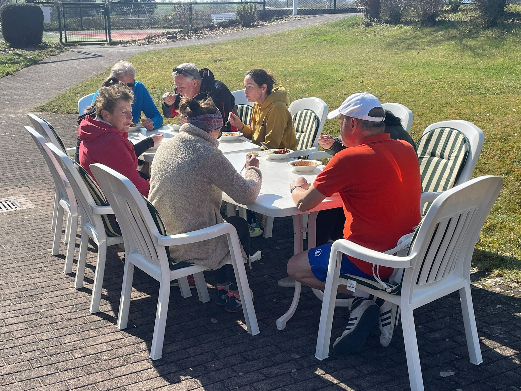 Bei wunderbarem Wetter gab es dann sehr leckeres Gulasch von den Thomasen, Krautsalat, Spätzle, 5 tolle Kuchen von verschiedenen Spenderinnen und vor allem Spaß beim Tennis.